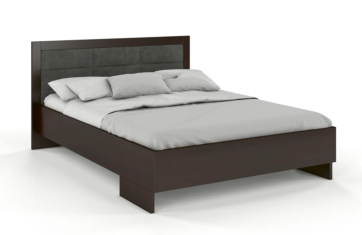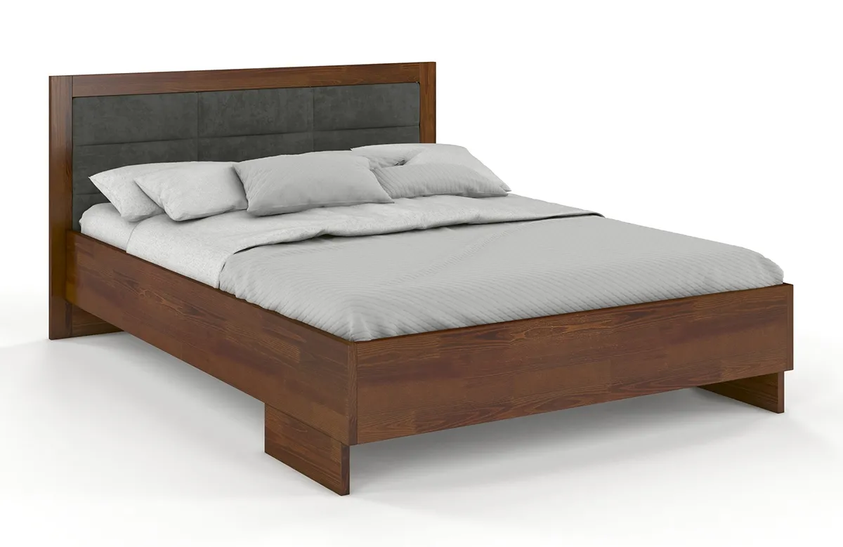 Klasyczne drewniane łóżko z tapicerowanym zagłówkiem będzie wspaniałym uzupełnieniem każdej sypialni. Ten mebel, łączy w sobie klasykę z nowoczesnością, dzięki czemu prezentuje się niezwykle pięknie i elegancko. Wykonane z wysokiej jakości drewna, jest solidne, stabilne i wytrzymałe. Szeroka paleta barw przy wyborze wybarwienia drewna jak i tkaniny na tapicerowany zagłówek pozwolą dopasować to łóżko do każdej sypialni. Drewno wykorzystane do produkcji jest najwyższej jakości i pochodzi ze zrównoważonych upraw.