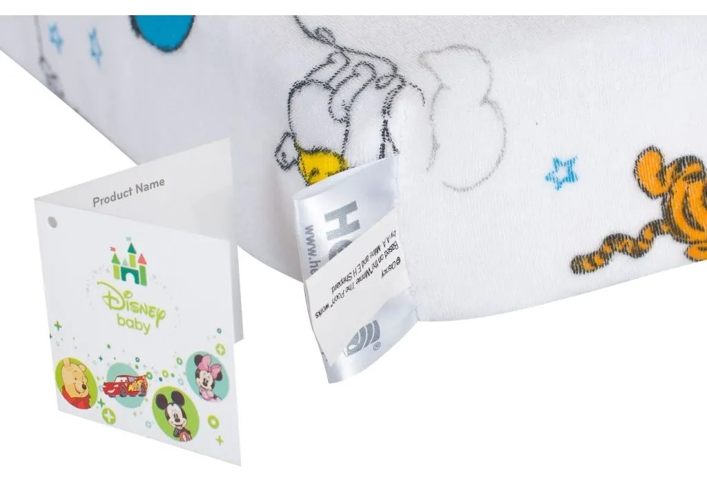 Pokrowiec jest z 100% bawełny, oddychający i antyalergiczny, bez pikowania, zdejmowany do prania, posiada taśmę suwakową z dwóch stron. Można prać w temp. 60C. Dzianina posiada certyfikat: "Bezpieczny dla dziecka". Wzór graficzny "Kubuś Puchatek" z kolekcji The Walt Disney Company.