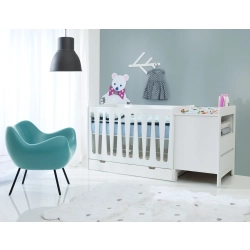 Barierka zabezpieczająca do łóżeczek Moon oraz Basic 120x60 oraz 140x70. wsuwana na oskrzynię łóżka, dodatkowo od wewnątrz można ją przykręcić wkrętem.