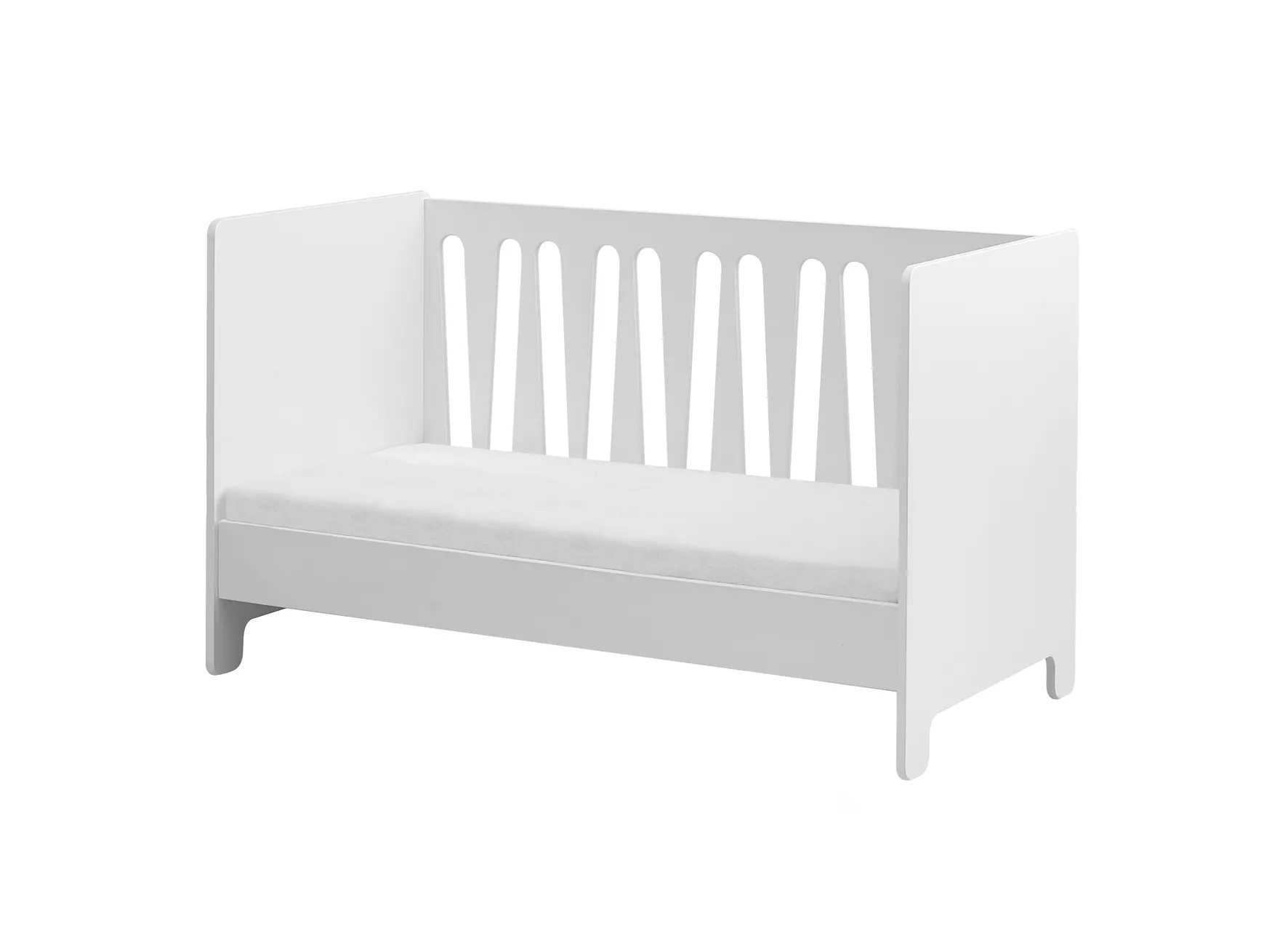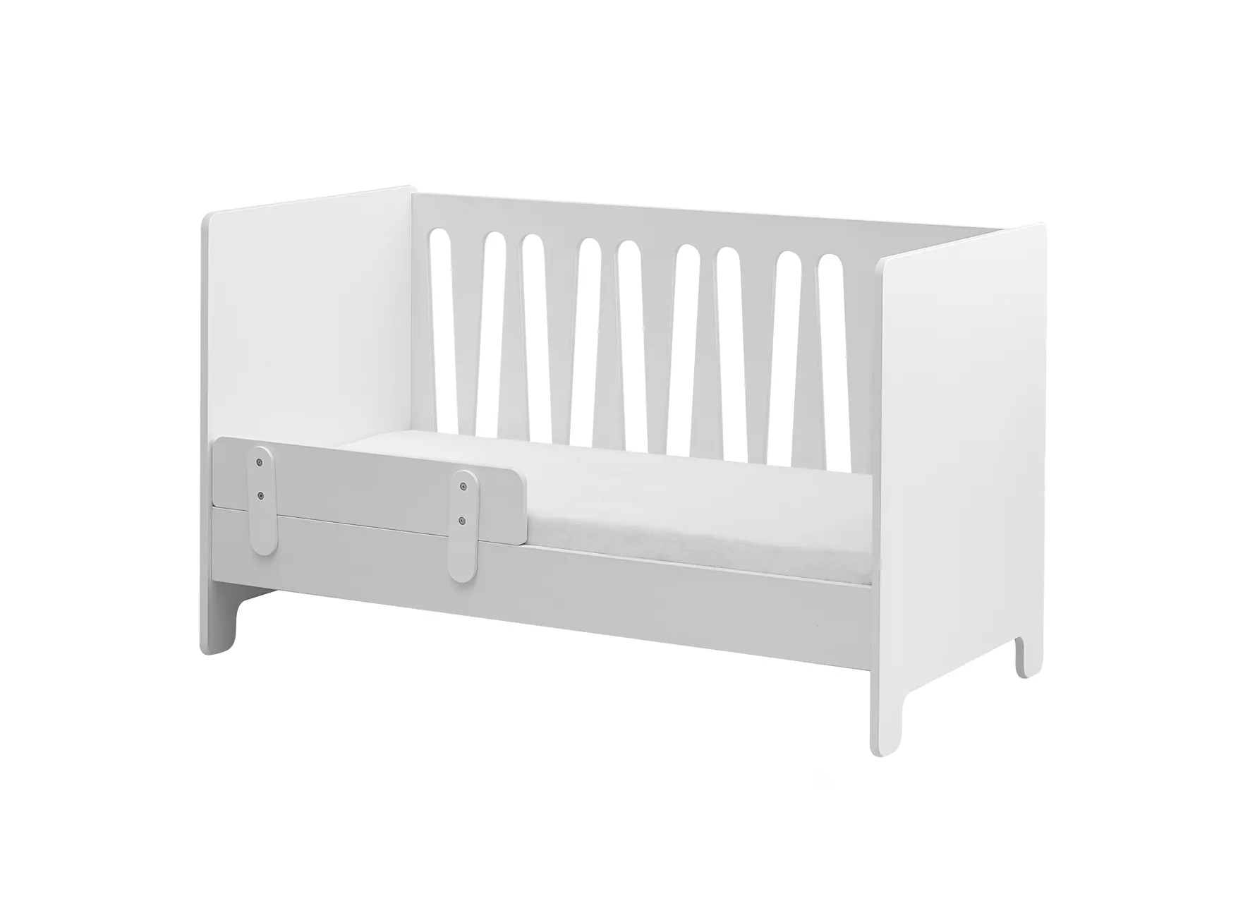 Łóżeczko pod materac 140x70 cm. Posiada 3 poziomy wysokości materaca, oraz możliwość demontażu jednego boku (zarówno prawego jak i lewego), w jego miejsce można zamontować oskrzynię (jedna sztuka), dzięki czemu łóżeczko pełni wtedy funkcję otwartego tapczanika dla większego dziecka.
