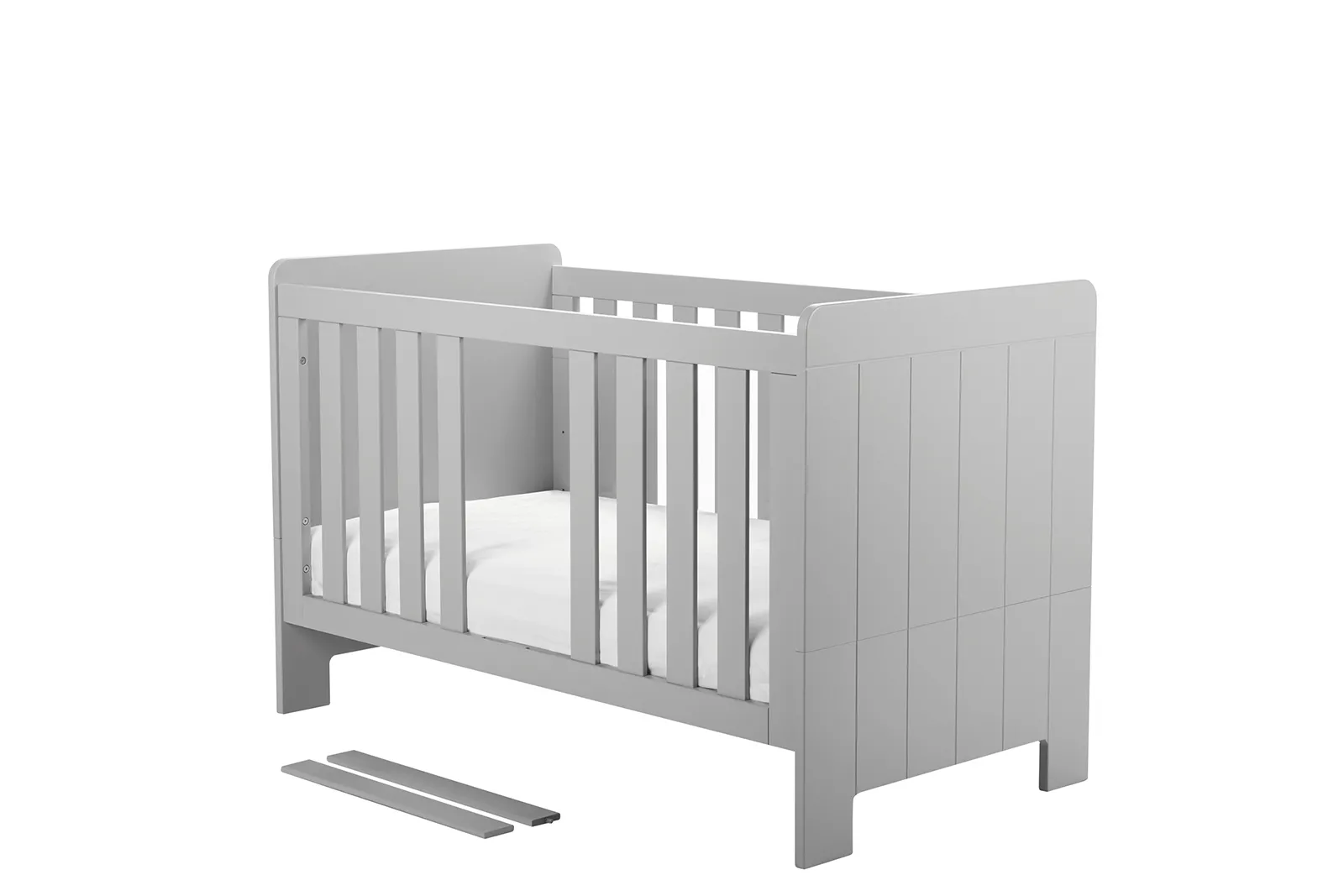 Łóżeczko pod materac 140x70 cm z kolekcji Calmo, z funkcją przekształcenia w tapczanik dla większego dziecka Posiada 3 poziomy wysokości materaca oraz dwa wyciągane szczebelki (na sprężynce). Cena nie obejmuje materaca. Do łóżeczka można dokupić szufladę, małą barierkę zabezpieczającą oraz materac Hevea Baby.